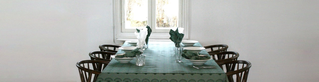 Bordsduk Solfjäder Bomull Skogsgrön Litet Mönster 140x200 cm